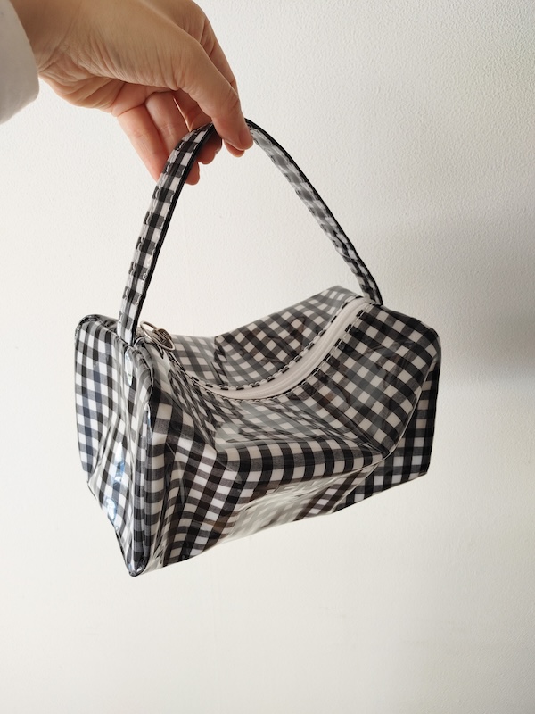 無地は11号のキャンバス、チェックはシャツ生地にPVCコーティングを施しているので、防水性、耐久性を保たせています。急な雨や野外イベント・レジャーなどで濡れたり汚れてもサッと拭き取れるので、メインでもサブでも大活躍です!!