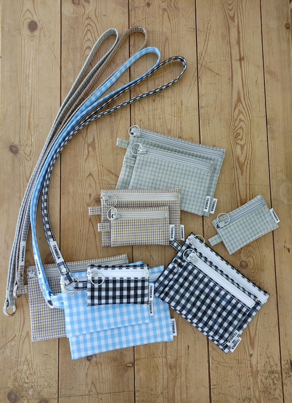 今日は、ポーチなどを収納させたGARMENT BAG、折りたたみ傘、ドリンクボトル、メガネケース、MINI ZIP、MULTI CASE、ハンカチ、そして、仕事帰りに銭湯に行く予定なので、銭湯道具も入っています。いつも行く銭湯のロッカーが縦型なのでBAGUETTE型は最強です!!