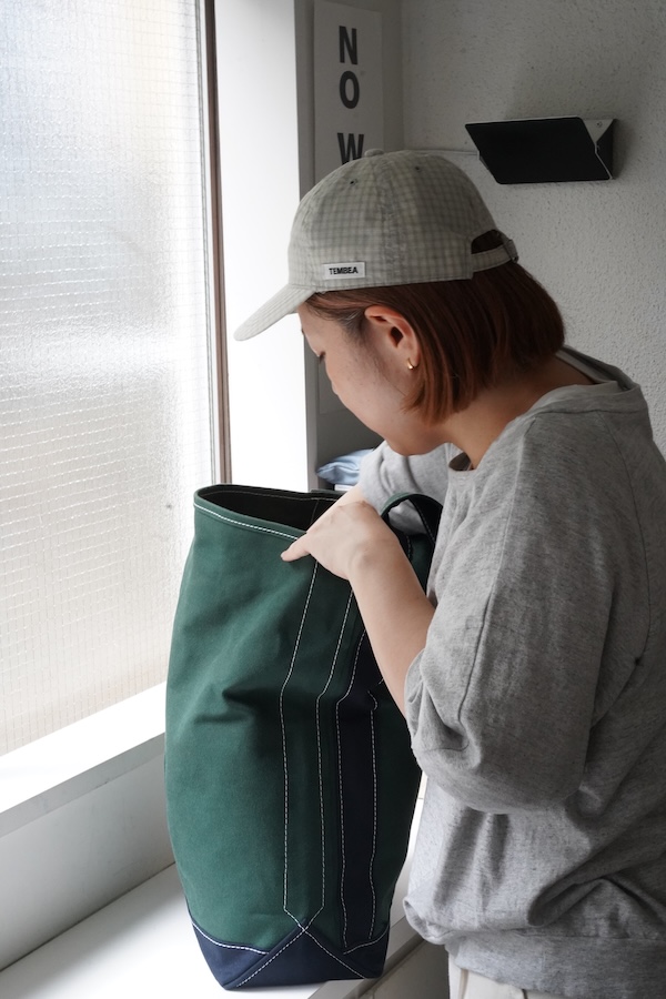 一年を通して出番の多いBAGUETTE TOTEですが、荷物が多い派代表のわたしは、LARGEサイズを!!(小さいサイズを持つという目標を早くも覆してしまい申し訳ございません笑)カラーは、シーズンカラーのFOREST-GREEN/ OX-BLUEを選びました。