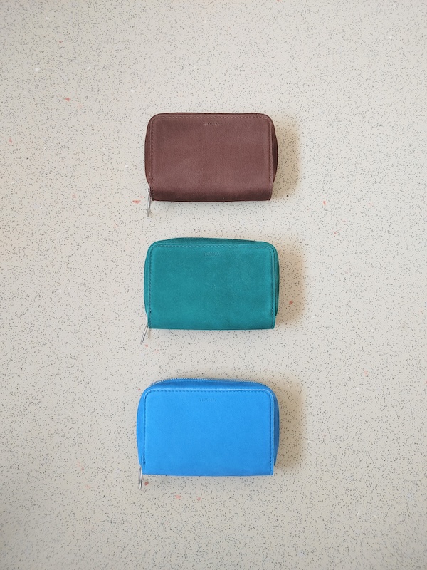 肌触りがよい起毛革のヌバック。お客様がご愛用されていて、お会計時にバッグから出した時に、発色のよさと相まって個性が出て素敵だなと思ったのがきっかけで、毎回カラーもたのしみなのです!!