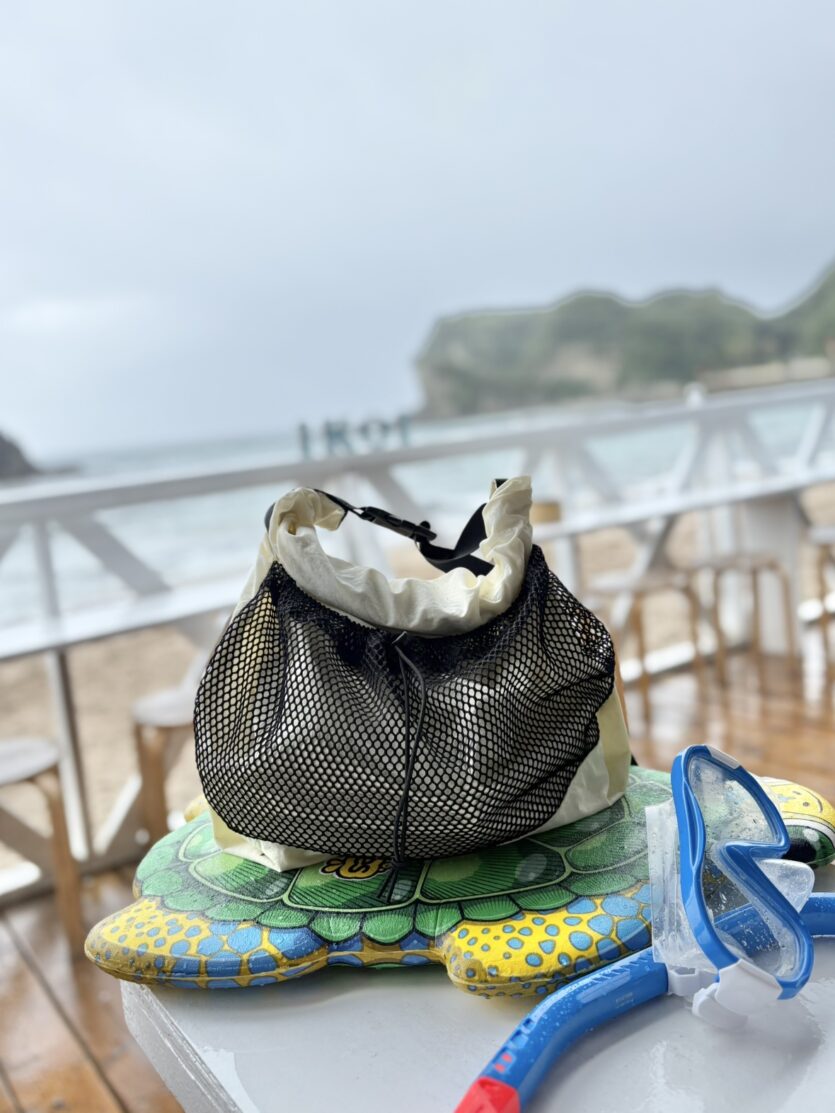 ハシモトとしまさんがPRINTを使っていましたが、ぼくはBASICな無地がお気に入り。ここに鍵や日傘、財布や汗拭きシートなど。休憩にいくときに必要なものを入れています。手持ちのハンドルにお気に入りのキーホルダーをじゃらじゃらつけるのにハマっています。(ガチャガチャをするのにハマってるので、それをここにつけたい…)