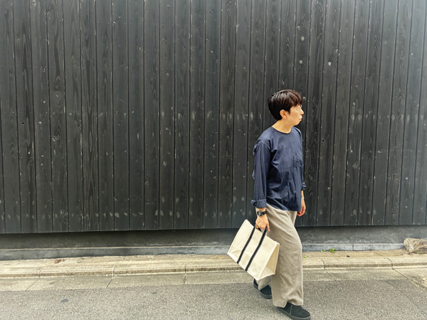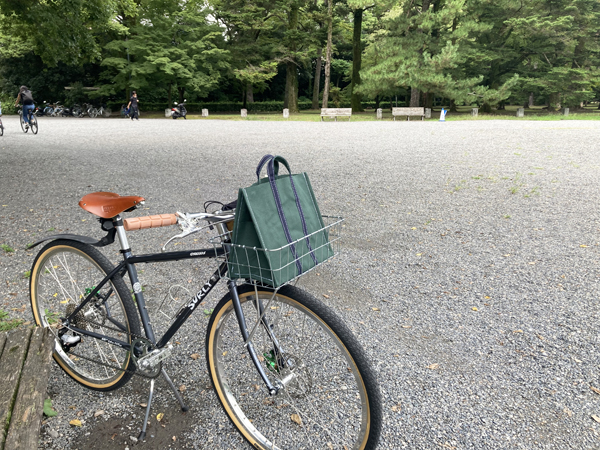 自転車にはもちろんですが、すっきりした雰囲気でお出かけ感のあるスタイルにも似合うのがこのトートの強み!ちょっとしたお出かけスタイルにも似合いますよ。ぜひお店で手に取ってお試しください。