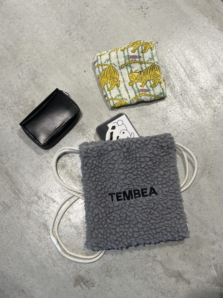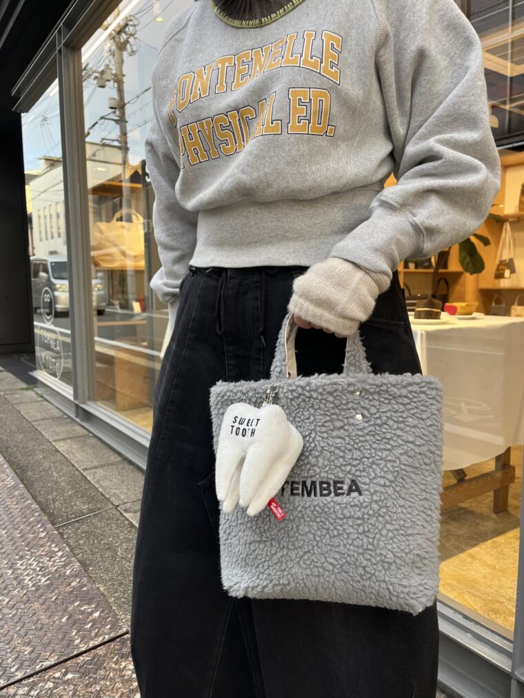 こちらはWINTERアイテムのNEEDLE PUNCHのFLAT POUCHをつけてみました!レッドでまとまっていてかわいいです❤️