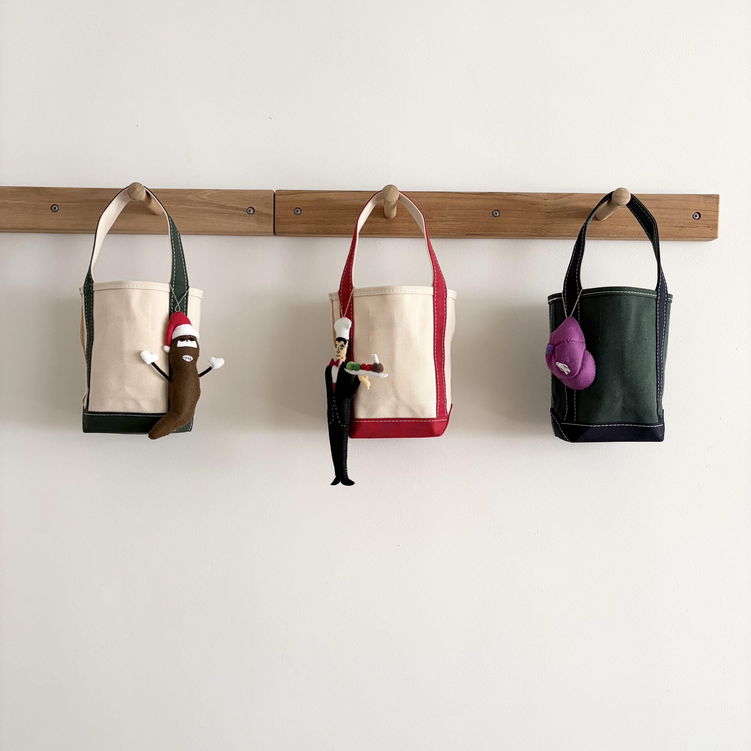メインというよりサブにフォーカスしてちょっとニッチなクリスマスオーナメントを作りたいと思ったとき、すぐに長谷川さんが思い浮かびました。以前大阪のdieciさんで作品を見てからファンになってしまったのです。一つ一つ手作りされるぬいぐるみたちは、親しみやすさの中に細かい特徴を捉えた鋭さ・際どさがあるのが魅力。クスッと笑えてどこか哀愁漂う長谷川さんの世界観は今回のイベントテーマにぴったりだと思い、お声がけさせてもらいました。