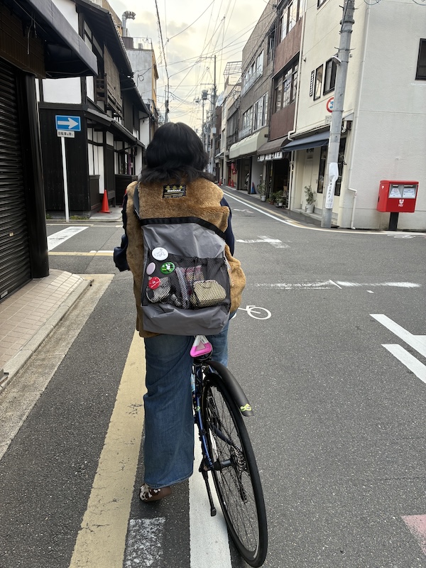 自転車の時も便利な斜め掛け↑