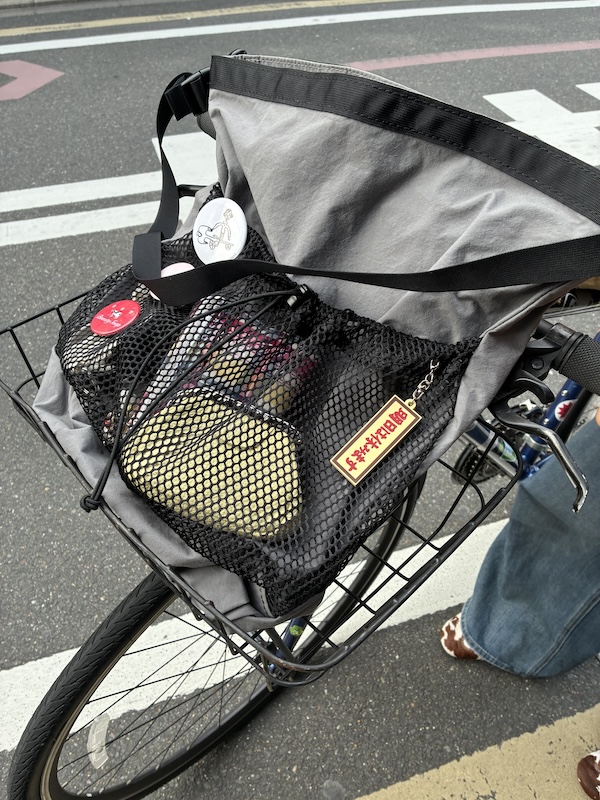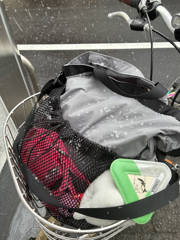 もちろん、自転車のカゴにもすっぽりと入ります👍(「明日は休みます」に目が行きますよね)