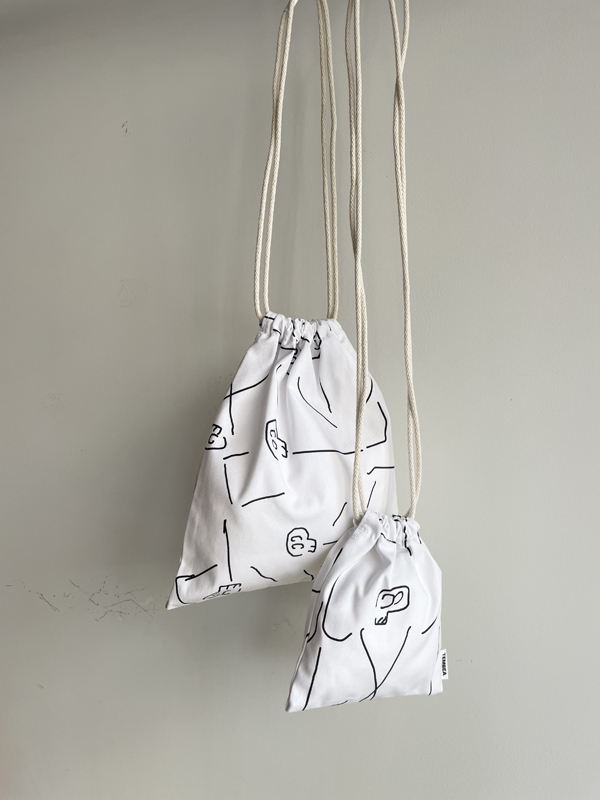 巾着、巾着POCHETTEからはじまって、3HANDLE TOTEは、特にプリントをたっぷり楽しめるサイズ感です。