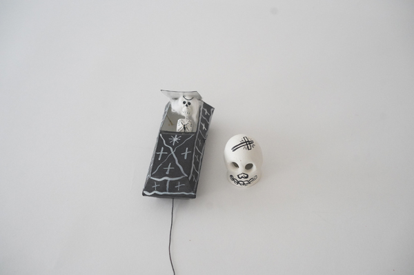 このプリントのドクロのモチーフとなっているのは、毎年11月1日と2日にメキシコで祝われる「死者の日」と呼ばれる、亡くなった家族への愛と敬意を示すお祭り。日本でいうお盆のような行事なのですが、この日が近づくと街にはドクロが溢れるそう!メキシコの死者の日はカラフルで楽しくユーモラスで、ドクロもちょっとPOPなんです。写真はデザイナーのHAYAの私物のドクログッズです。こちらも普通にお部屋に飾りたくなるような可愛さがありますよね、ドクロなのに!!