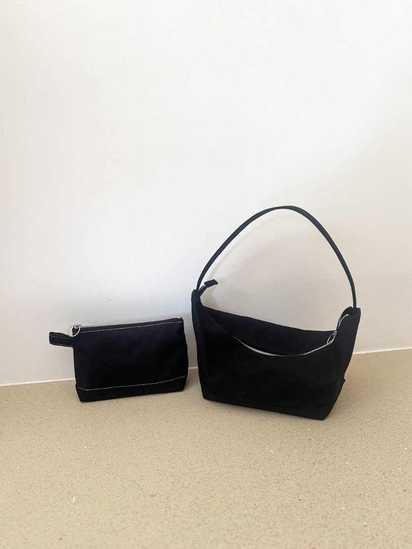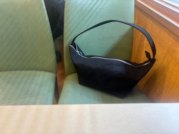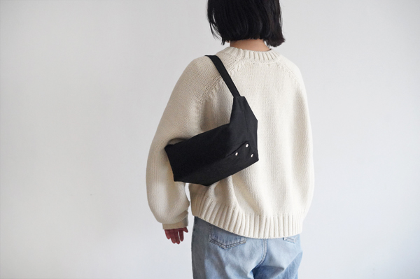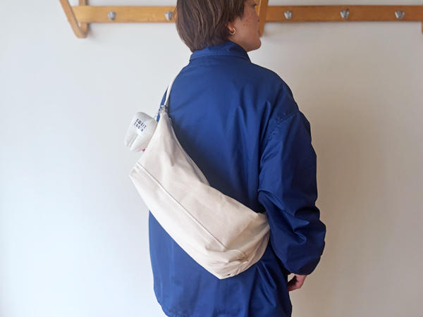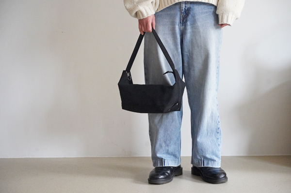 名前の通り、バナナのようにゆるくカーブしたかたちのバッグです。荷物の重みで自然にたわみ、肩にかけると身体に沿うようにフィットします。