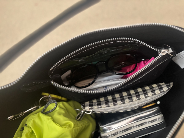 TOILETRY BAG MEDIUMの中には、サングラス、ティッシュ、薬、エコバッグなどを入れています。細かいものたちがひとまず落ち着く場所になりました。ものに居場所ができて整うと気持ちがいいです。