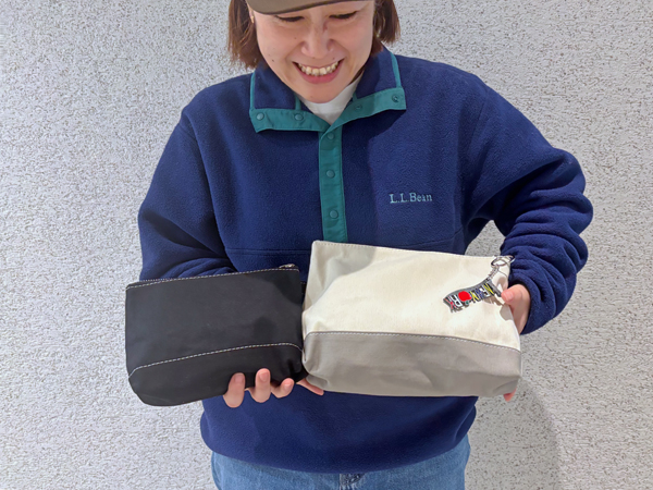 TOILETRY BAGは昔からある定番のポーチですが、ここ数年はおやすみしていました。化粧品やアメニティなど立体的なものを入れられるポーチが欲しいなあと思っていたのですが、今期久しぶりに復活しました!サイズはMEDIUMとLARGEの2サイズです。