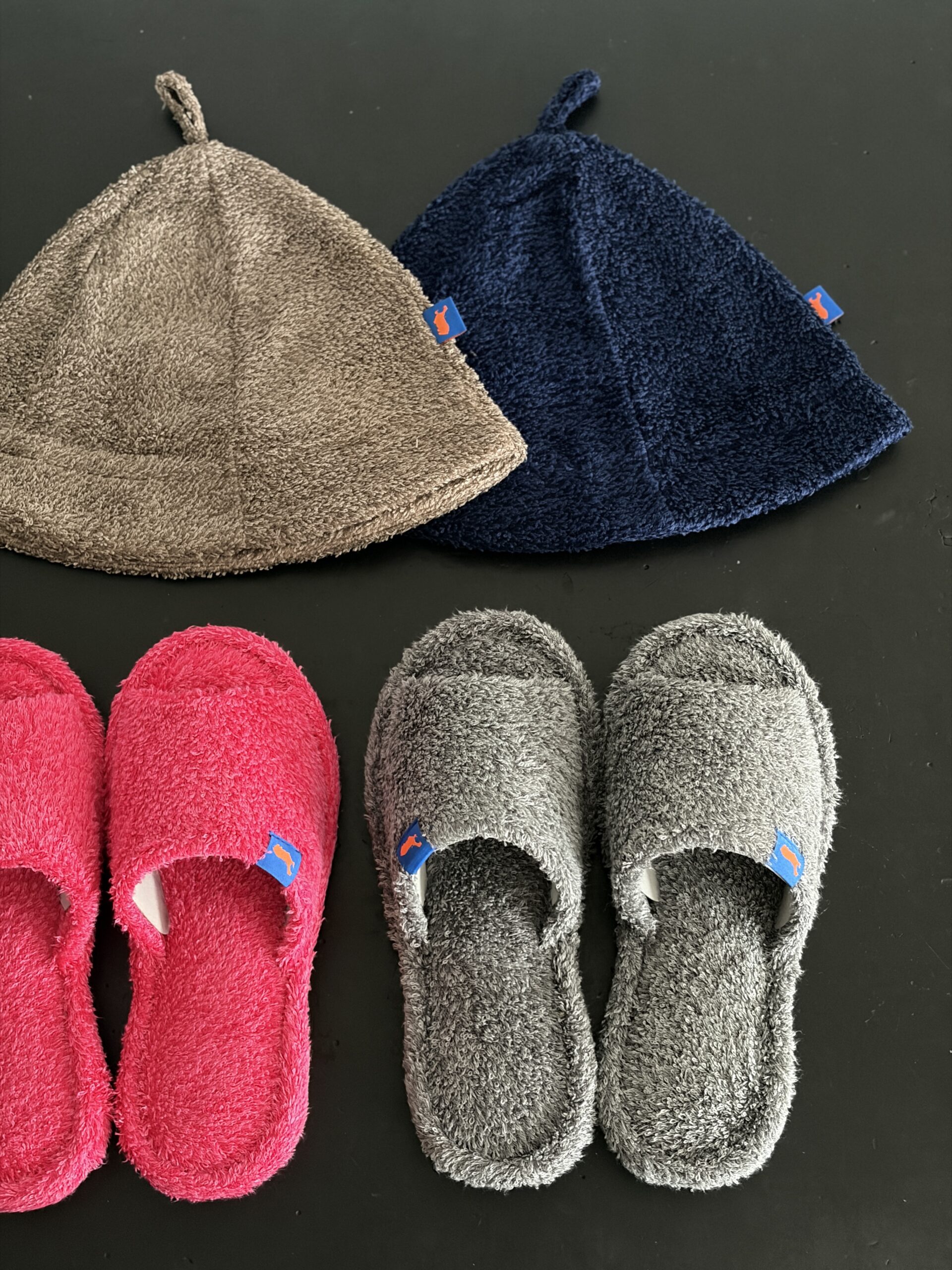今回の発売にあわせて、期間限定でHippopotamusさんのタオルやルームシューズ、サウナハットをTEMBEA TOKYOにご用意しました。タオルはハンカチサイズからミニバスタオルなど実際にお店でご覧いただけます。